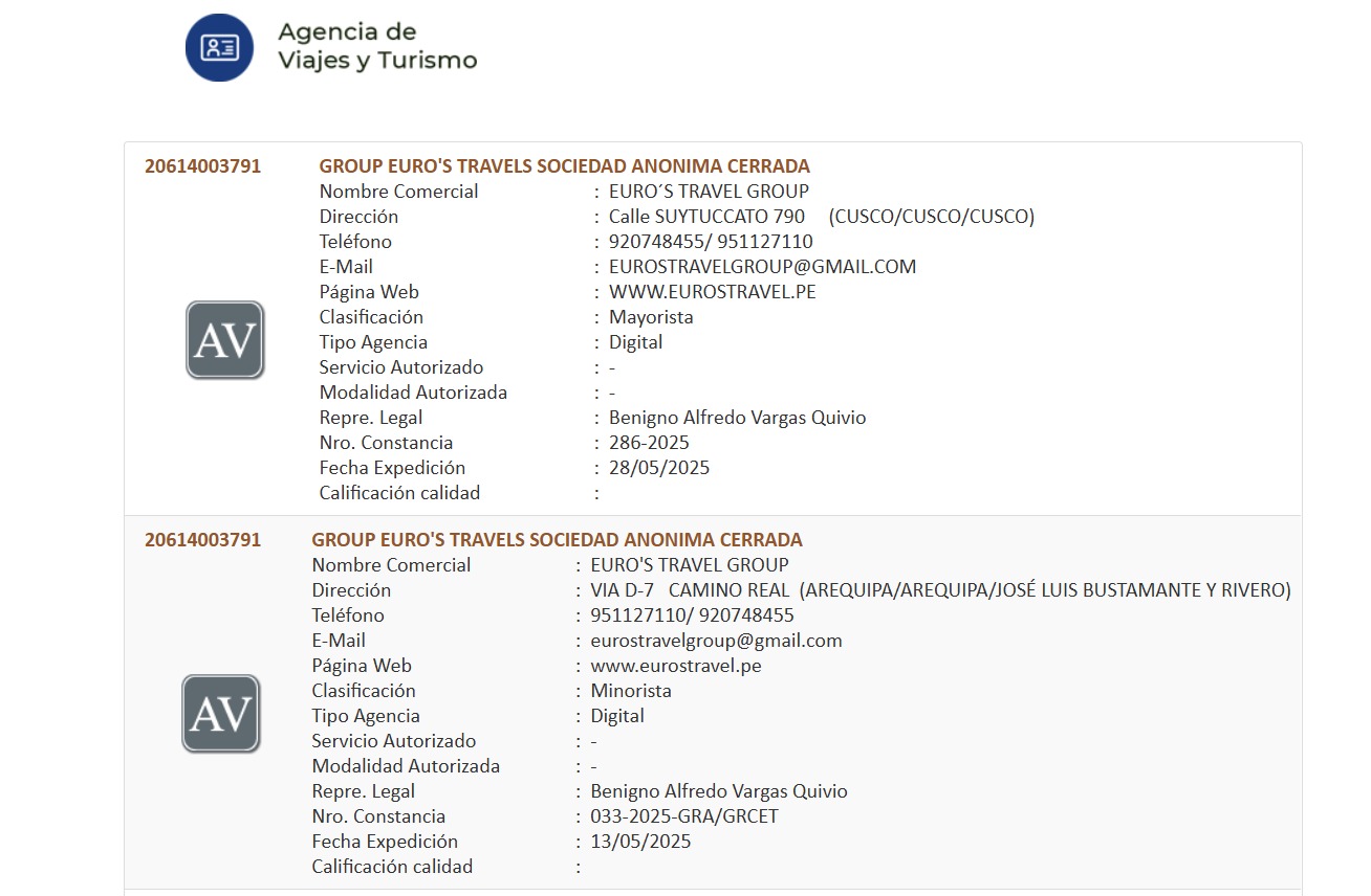 Contamos con la autorización y acreditación del Ministerio de Comercio Exterior y Turismo del Perú (GERCETUR) y cumplimos con todos los requisitos de funcionamiento para la prestación de servicios turísticos.